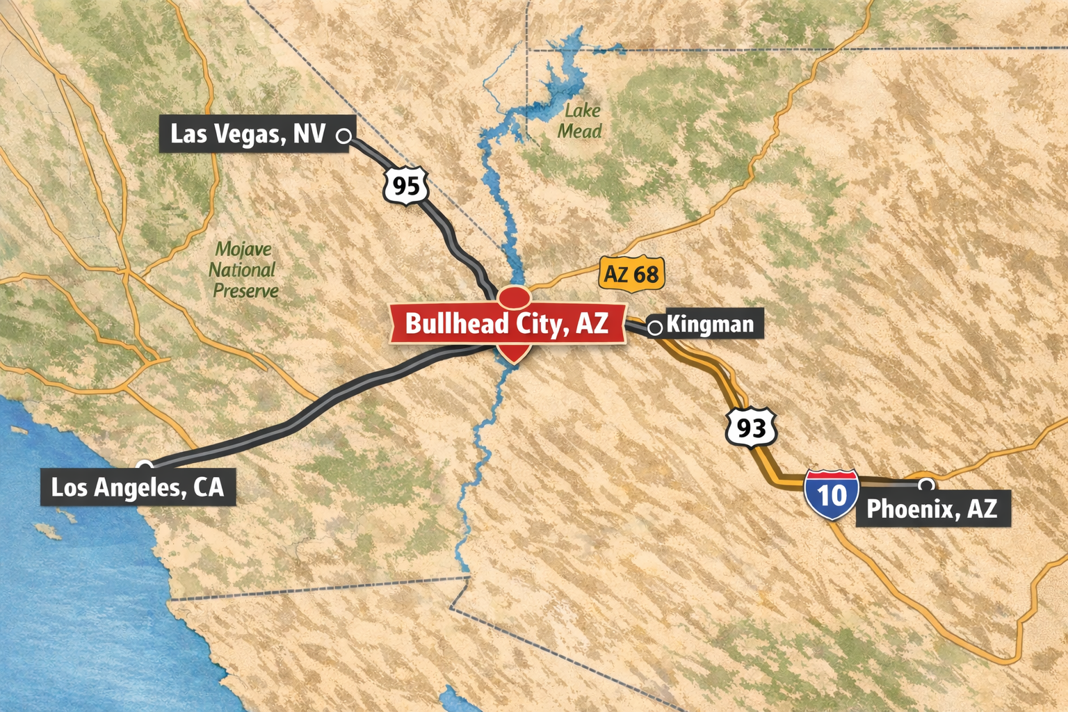Located in northwestern Arizona, Mohave County sits within the rapidly growing Tri-State Trade Corridor, where Arizona, Nevada, and California meet. This strategic position places the region within comfortable driving distance of several major metropolitan markets.